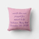 Jetez un oreiller pour accueillir le bébé à la maison. Texte...ça vaut la peine d'attendre. J'ai prié pour. Bienvenue . Un endroit pour le nom et la date du bébé. Customisez et personnalisez. Sur le dos du coussin, le mot amour est carrelé. Rose et violet, mais changez-le pour en faire le vôtre.