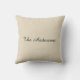 Coussin Bienvenue Monogramme Nom de famille Turquoise Stri