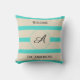 coussin de déco rayée beige et turquoise, entrez votre nom et votre initiale de famille à l'avant et à l'arrière en utilisant le bouton personnalisez ce modèle ou personnalisez-le. Autres styles disponibles.