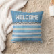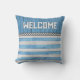 Coussin Bienvenue sur Blue Wood et Stripes