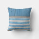 Bienvenue à vos invités avec cet oreiller bleu et blanc. Design rustique avec bois et rayures simulés.