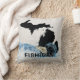 Gros poissons sautant d'eau bleue avec le texte noir du Michigan graphique et "poissons".