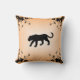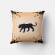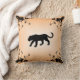 Grand coussin de couleur brun clair, peaché avec cadre feuille autour de panthère noire. Fantastique coussin de la faune