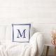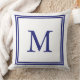 Coussin solide de carré blanc avec un double cadre bleu nautique sur l'avant et le dos. Personnalisez ce coussin classique avec votre choix d'initiale.