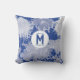 Coussin Blanc bleu Vintage Chinoiserie Floral Monogramme