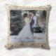 Coussin Blanc Élégant et Or Faux Paillettes Photo Mariage