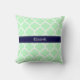Motif de treillis à quatre feuilles marocain vert menthe et blanc #5, Étiquette de monogramme avec ruban bleu marine