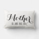 Décor à la maison chic. Coussin fait sur commande noir et blanc de cadeau de souvenir du jour de mère que vous pouvez personnaliser avec les dates de naissance de vos enfants. © d'Elke Clarke disponible chez www.zazzle.com/monogramgallery. Réversible avec le manuscrit blanc d'un côté et le noir de l'autre. Le mot "mère" et dates vos enfants étaient né. Un cadeau élégant et élégant pour votre maman, maman, mère.