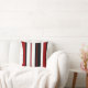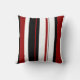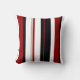 Cette conception présente des bandes verticales rouge noir blanc sur cet oreiller à lancer.