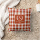 Oreiller décoratif à motif monogramme et armoiries gingham rouge-orange élégant et rustique.