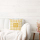 Coussin décoratif à motif Gingham jaune élégant et rustique avec blason et monogramme.