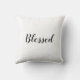 Bienheureux noir et blanc script personnalisé calligraphie mignon Throw Pillow. Design élégant et moderne. Texte personnalisable