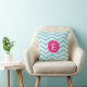 Coussin Bleu blanc Chevron rose clair Monogramme
