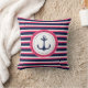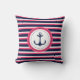 Coussin Bleu bleu marine Hot rose rayures Ancre