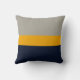 Coussin Bleu foncé, Jaune, Gris rayé Texté