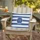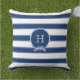 Bleu Marine Blanc Nautique Monogramme Moderne Rayures Coussin extérieur
