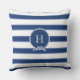 Coussin Bleu Marine Blanc Monogramme Nautique Stripes mode