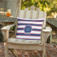 Bleu Marine Blanc Nautique Monogramme Moderne Rayures Coussin extérieur