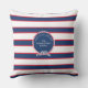 Coussin Bleu Marine Bleu Rouge Monogramme Nautique Bande