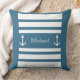 Bleu Nautique Et Blancs Ancre Nom Jeter Oreiller. Vous pouvez personnaliser en écrivant du texte (nom, nom de famille, monogramme...).
