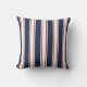 Style nautique chic pour votre maison de plage ou salon d'été. Notre oreiller classique à rayures propose des rayures verticales en bleu marine nautique et rouge foncé muet sur un arrière - plan crème en ivoire.