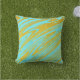 Coussin Bleu sarcelle vert or pailleté doré motifs artisti