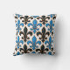 Coussin Blue Black Baroque Fleur-de-lis Pattern Design