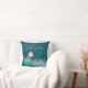 Help make your home or office more festive this holiday season with our adorable square throw pillow (different sizes and fabrics available) that features a darling Santa standing atop of teal-colored ornament, riding a wave of snowflakes.