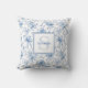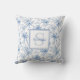 Add a soft, feminine touch to your space with this blue floral French toile throw pillow. Featuring a delicate floral floral pattern with coquette bows and personalized with monogram and name. It brings warmth and charm to any room.