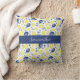 This blue French Country lemon pattern throw pillow features watercolor lemons and delicate blue botanical accents with custom name. This design offers a perfect blend of rustic warmth and sophisticated style.