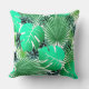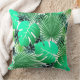 Coussin décorative dans les tons bleu, turquoise et vert. Ce design est un magnifique motif de jardin d'été avec des feuilles de palmiers mignons et modernes.