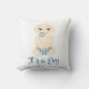 This pillow for baby je vais HA modern and fun design with à baby je vais illustration in blue shades.