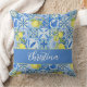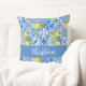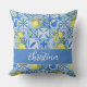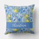 Coussin Blue Tile French Country Lemon Pattern Monogram
