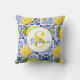 Coussin Blue White Lemon Tile Pattern Citrus Monogram Name