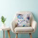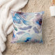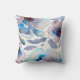 Fleurs d'aquarelle romantique et plumes de boho coussin moderne bleu