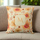 Une coussin boho botanique aquarelle avec un design floral orange crème accentué de tons jaunes et beiges, avec des fleurs chic et un look rustique élégant et tendance, dans des tons terre cuite, parfait pour les décors automne, automne, printemps, été ou hiver.