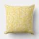 Un coussin de jet bohème botanique présentant un motif délicat de feuillage blanc sur un fond jaune vif. Les branches feuillues et les brindilles apportent une énergie joyeuse et ensoleillée au design organique. Un accent vibrant pour les salons de soleil, les salles de séjour ou tout espace qui aime une touche de couleur botanique chaude.