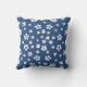 Boho retro blanc fleur sauvage bleu lancer oreiller.