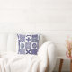 Coussin moderne à motifs chic et chic avec tournesol, jarres à gingers, fleur de lys et carreaux morrocans bleu marine et blanc. Au verso sont assortis bandes bleues avec un triangle monogramme, pour vous d'ajouter votre propre initiale