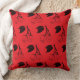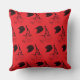 Bois noir design de cerises sur un coussin rouge. Design moderne de bois dessiné à la main par l'artiste de coupe WindyDesign.