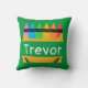 Le coussin personnalisé, audacieux et coloré pour enfants, est idéal pour les chambres, les salles de jeux et les espaces d'enseignement à la maison. Design dispose d'une boîte de crayon séparée avec la pièce à personnaliser avec le nom de l'enfant au centre, sur l'arrière - plan vert.