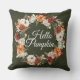 Bonjour citrouille automne moisson floral blanc script lancer oreiller avec la couleur verte sauge.