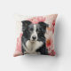 Coussin Border Collie Dog and Bold Pink Lilies