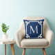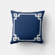 Coussin Bordure clé grecque Monogramme bleu et blanc de la