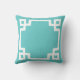 Coussin Bordure de clé grecque Turquoise et blanche