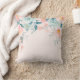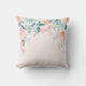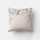 Coussin avec une élégante bordure fleurie. Fleurs et feuilles en rose et vert.