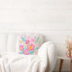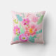 Cette coussin est dotée d'un beau bouquet féminin et coloré de fleurs assorties dans les tons rose, orange, jaune et blanc, complété par des feuilles verts et aqua sur un arrière - plan rose doux.