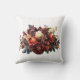 Un magnifique coussin de jet floral maussade avec des fleurs de bourgogne, marron, bleu foncé, violet, corail et blanc.