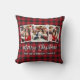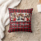 Brosse moderne Script 3 Photo Noël Rouge Buffalo Plaid Coussin