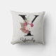 Coussin décoratif brodé monogramme rose bohème, cadeau idéal pour Noël ou un anniversaire pour une fille, une mère, une tante ou une sœur. Personnalisé avec le monogramme de la lettre Y et un nom. D'autres lettres sont disponibles dans ma boutique.